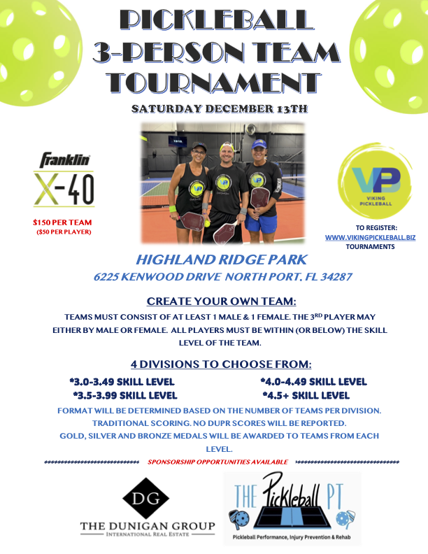 - December 1st: Co-Ed Individual Round Robin 3.5+