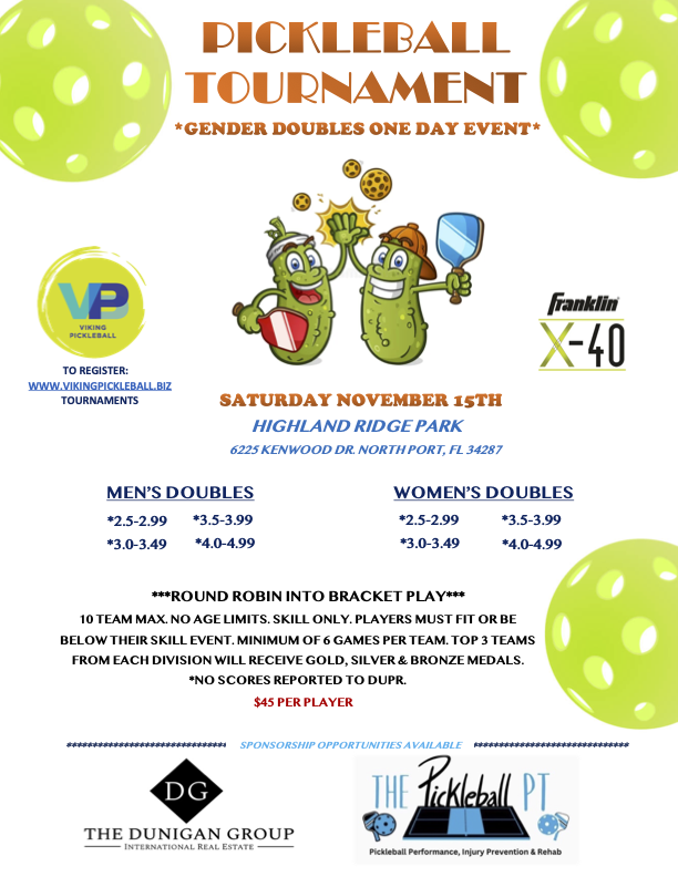 TO VIEW EVENTS: WWW.PICKLEBALLBRACKETS.COM